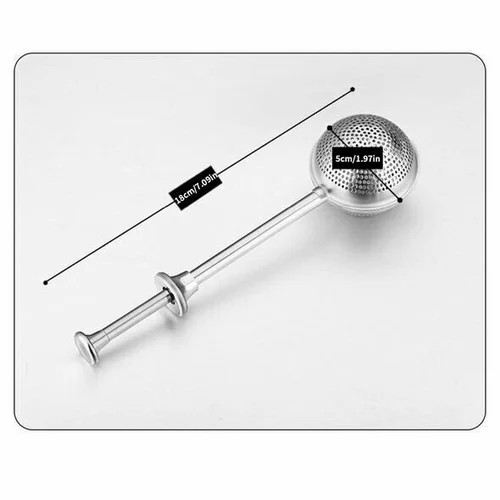 Stand out with our elegant tea ball infuser. Baking Just Got Easier: Powder desserts with cinnamon, sugar, cocoa powder and more with graceful precision. Flour Surfaces: Top up the flour on your surfaces for non stick baking without having to use crazy amounts - get an even coating. Perfect for bread makers who have sticky hands while kneading and don't want to put them back into the flour pot in case they get the fresh flour mixed up with the wet flour on their hands. Spring Operated: Simple Design Made for picking up dough with ease. One Side has no holes so you keep the flour and sugar going where you want it. Artisan Tool: Smooth Stainless steel is easy to clean, dish washer safe and adds a classy touch to your baking drawer. A great gift: Know a keen baker then this is the gift for them. Or maybe even a gift for yourself. Weight: 35g; Size:18*5cm (7.2*1.7); Material: Stainless steel; Packing list: 1 * Tea strainer.