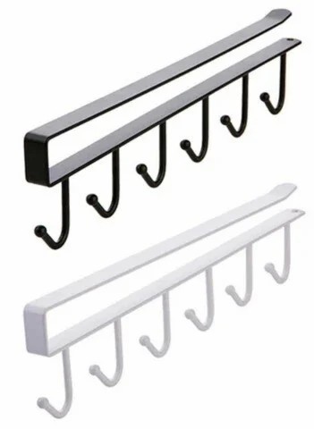 The Under-Cabinet Hanger Rack offers a convenient way to hang cups, cookware, towels, gloves or anything you want to hang under the cabinet, the shelf, or any other entrance channel. Our under-cabinet rack is so easy to install. Simply slide the rack over a cabinet or shelf and it is all set up. No complicated installation needed, totally nail-free. The rack was designed specifically to fit any standard shelf and offers six robust hooks that hold up to 20kg (44lbs) for your kitchen essentials. Space Saver: The under-cabinet racks make use of the unused space in your home. Ensure your kitchen utensils are organized and coordinated. Robust & Sturdy: Sturdy steel constructed, these racks can hold up to 20 kg (44 lbs), enough to hold cups, cookware, pliers and other items. Easy to Install: Simply slide in the rack over a cabinet, with the curved-ends that locked on the cabinet. Multi-Use: Our hangers can hold spoons, towels, gloves, etc. or things you want to hang in the kitchen, bathroom or other places. Creative Design: Comes with two colors and a stylish design to match your kitchen interior. Material: Iron with waterproof finishing; Size: 15 * 1.6 * 0.7cm; Package includes: 1 * Under-Cabinet Storage Rack (6 Hooks);