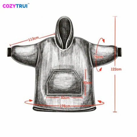 They are made with extremely soft flannel fleece - perfect for cuddling. This is professionally made to spend many winters. Don't worry about tears - we know how to sew them! Furthermore, the complete washing machine is washable/care free. We make the perfect gift, which is why every wrapped in a bow comes ready as a gift. Keep warm and comfortable! With extra long arms, a big warm hoodie and a big pouch, the Blanket Sweater will keep you wam and comfortable while you relax at home, watch TV, camp,watch sports events and everything in between. It's like a hug in a blanket! The Blanket Sweater is a portable Sweater blanket made from the softest flannel fleece on the outside and the most comfortable cotton sherpa fleece on the inside, perfect for cuddling, watching movies and those cold winter mornings. A Size Fits Everyone! Our unique design makes the CozyTrui™ Extra Large Blanket Sweater wearable by anyone, even your kids so the whole family can be comfortable from head to toe. Big warm sweater, big pouch and ribbed sleeves with cuffs. UNISEX SO PERFECT FOR HIM, HER AND THE KIDS! Wash without worries - throw it in the wash then in the dryer on low - it comes out as new. Outer material - Luxurious microfibre fleece. Inner material - premium fluffy sherpa fleece. 100% Cotton Sherpa Wool. Size: one size.