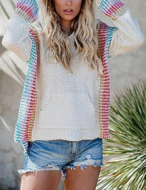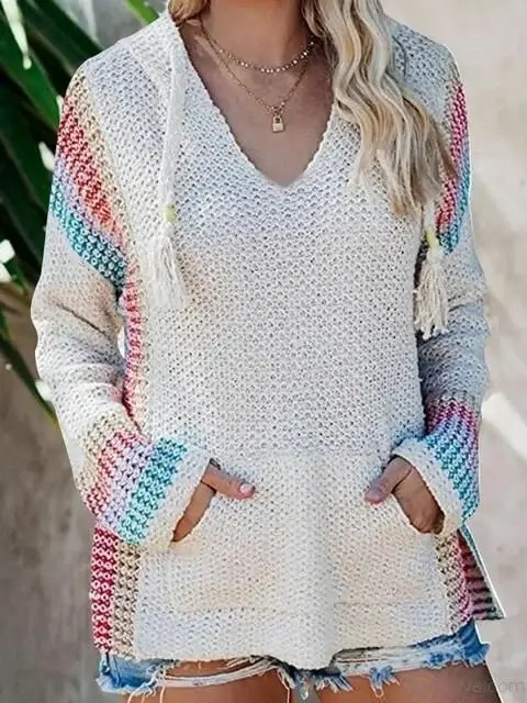 Boho Hooded Jumper Sweater With Pocket